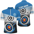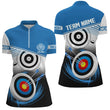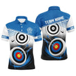 Personalisiertes Bogenschießen Poloshirt für Herren & Damen mit Namen und blauem 3D-Ziel Motiv T0529