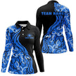 Schwarze und blaue Muster Bowling Polo Shirts für Damen, individuelle Team Bowling Trikots für Mädchen Bowler Q5355