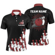Schwarzes Retro-Bowling-Teamshirt für Herren | Individuelles Bowling-Polo-Shirt | Bowling-Geschenke für ihn | Rot Q7054